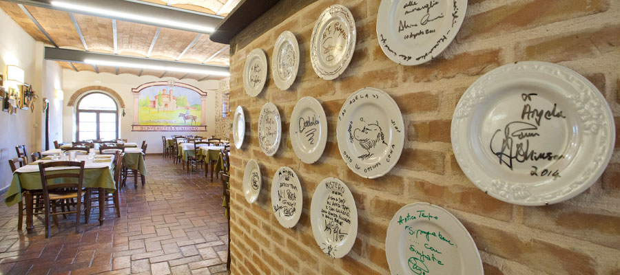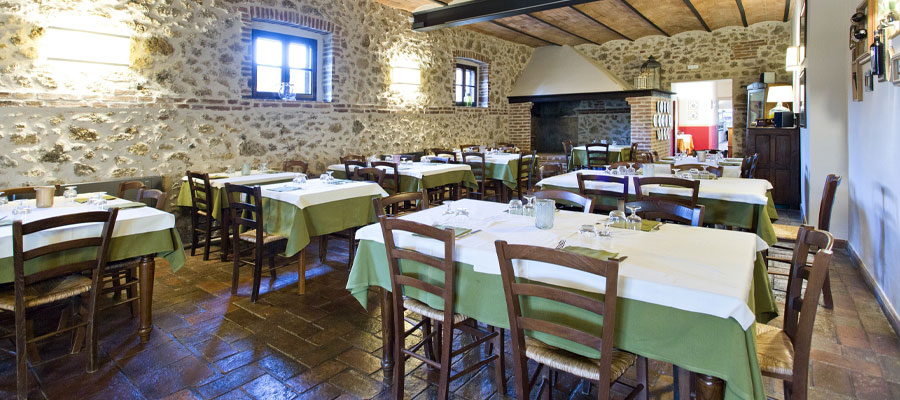 Even this part, like the rest of the property, has maintained the original style, highlighted by characteristic elements such as the giant fireplace that “dominates” one of the rooms. In addition to the places inside, the restaurant offers also a covered terrace and a shady garden that will be the backdrop to a dining experience able to take you back in time.
